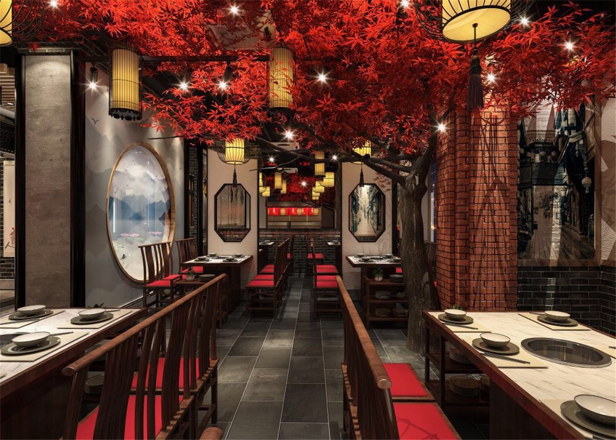 案例介紹:川西壩子是成都著名火鍋連鎖品牌,項目從從設計到施工到落地歷經3個月,將傳統火鍋店特色與中式元素相結合,并綜合川西壩子連鎖店的風格和彭州市本土市民文化風情。